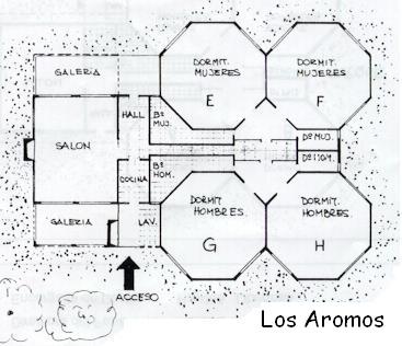 - 4 dormitorios con 4 camas cucheta c/u (8 personas),cuyo diseño octogonal permite reuniones de pequeños grupos. Puertas -ventana con acceso a lugares de encuentro.