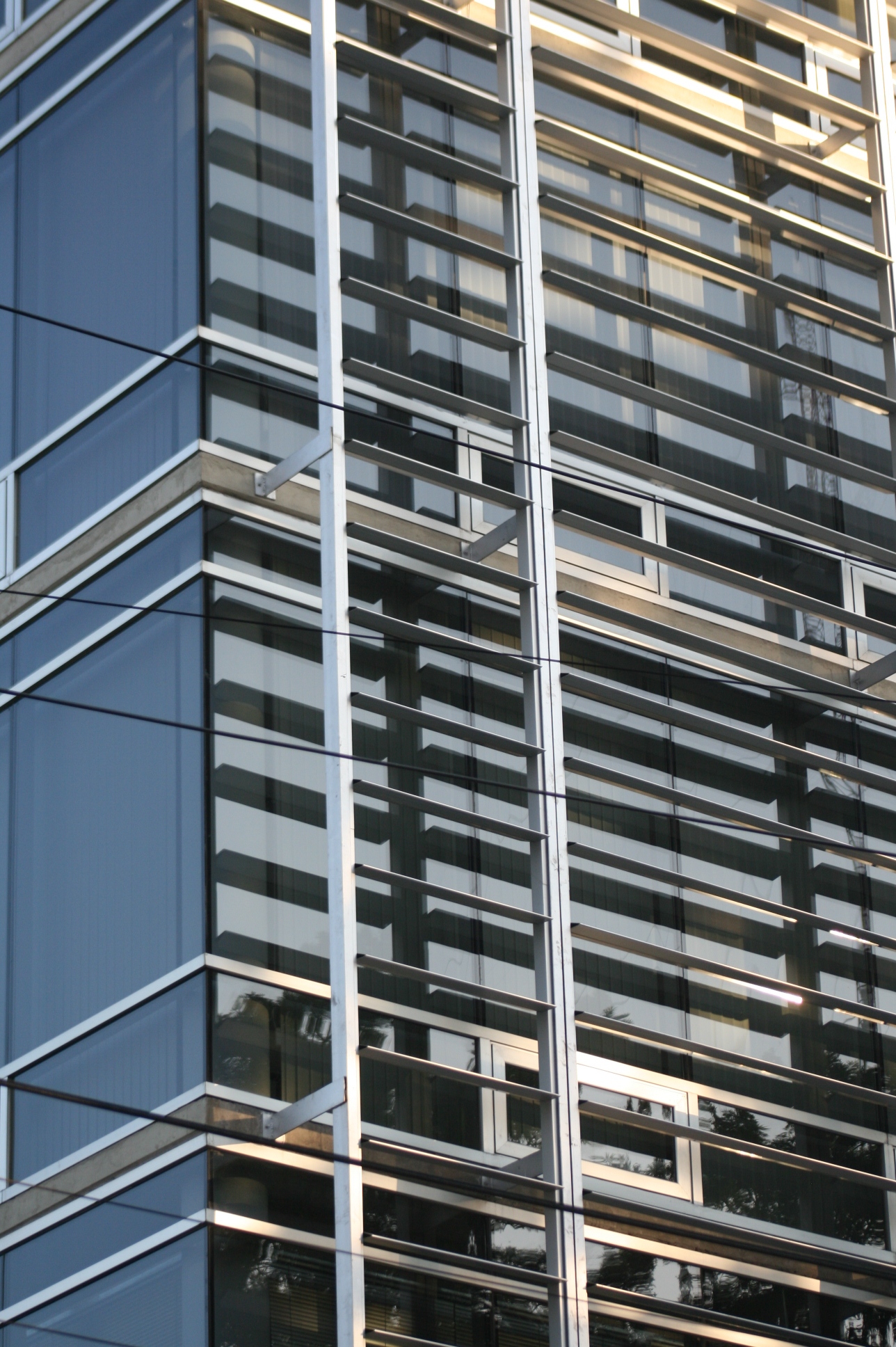 La imagen que se desarrolló es la de un una caja de hormigón libre en el aire con dos fachadas acristaladas sobre la esquina. Una de ellas, la más larga y paralela a la autopista del sol, posee una vista libre con mucho movimiento. La otra cara, acristalada sobre calle Ugarte y orientada al noreste, está protegida por un gran parasol que cubre la totalidad de la fachada Noroeste.