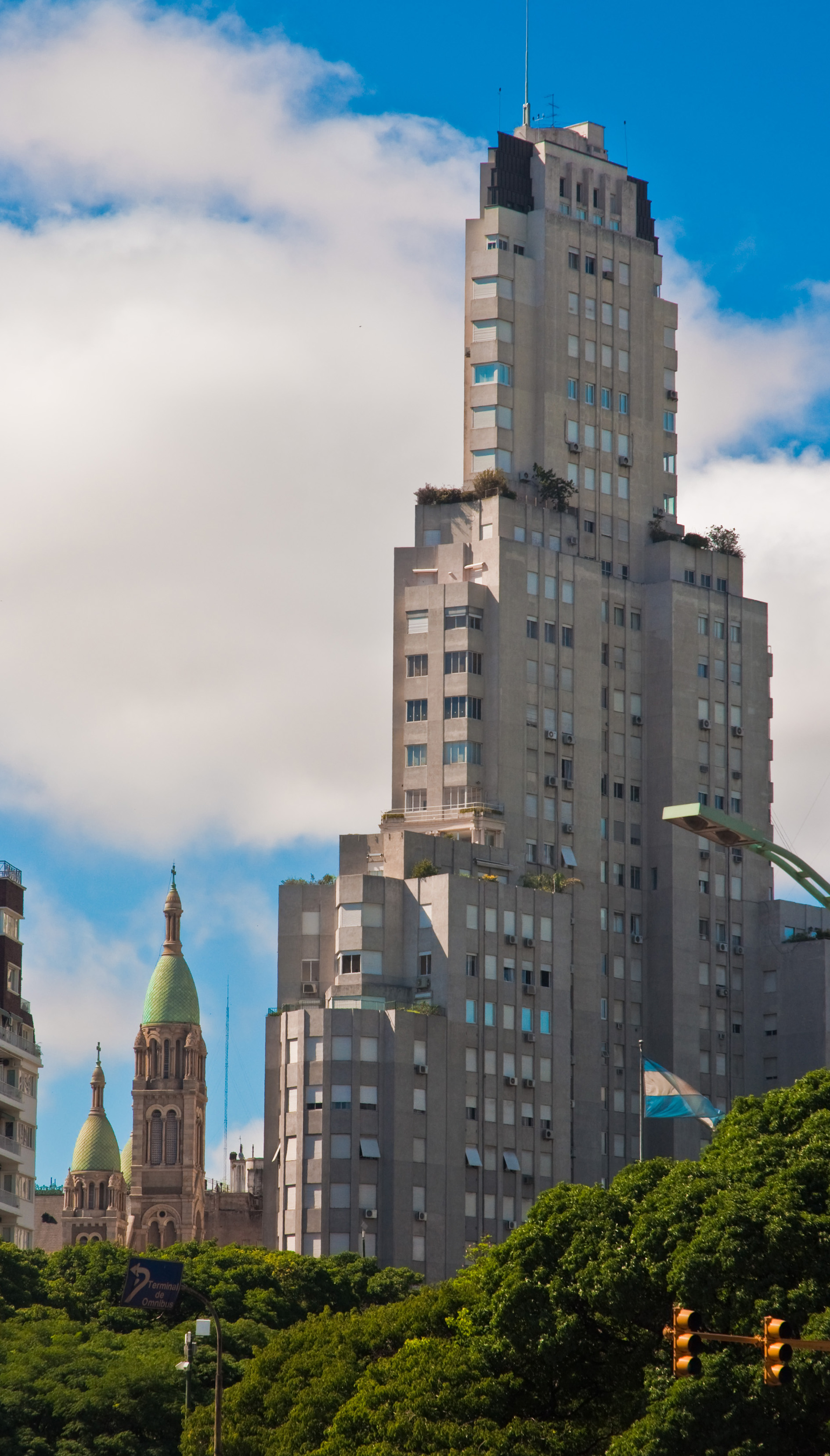 Esta estrategia liberó la totalidad de la fachada que posee vistas fantásticas sobre la arboleda de la plaza San Martin y vistas lejanas sobre Retiro y el Puerto hasta el estuario del Río de la Plata.